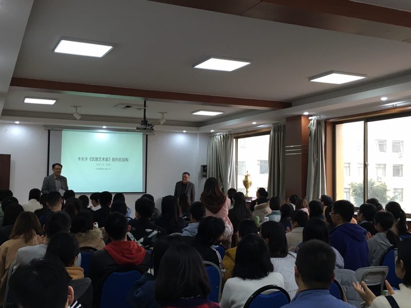 11月28日下午3:00,文学院博文讲堂2018年第15讲——《卡夫卡<饥饿艺术家>的内在结构》于我司浮山校区博文楼521会议室举行,特邀主讲人为北京大学中国语言文学系教授、北京大学比较文学与比较文化研究所所长张辉。文学院师生积极参与,现场学术气氛浓厚。