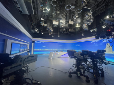 在这里工作人员细致、热情的为我们讲解电视台工作流程,并带我们参观部分工作实景。在六楼高清演播室,是《新闻在线》栏目主要拍摄、制作场地,在实地机房里我们被庞大复杂的专业摄像机、错落有致的灯光布置所震撼,近距离感受到专业摄像机的魅力所在。随后我们来到位于10楼的新闻中心演播室,映入眼帘的是一块收集、显示各方数据的大屏幕,实时播放各账号数据,以利于及时监测。在这里我们学习到新闻制作的流程,一个新闻需要经历选题、采访、编辑写稿、成片、三级审核、录制播出等一系列流程才能最终呈现在观众面前。13楼是全媒体广播中心,主要运营《青岛综合广播》、《青岛经济广播》、《青岛文艺广播》、《青岛交通广播》、《青岛广电银色年华》、《海米FM》等,我们现场观看了导播老师的工作,在旁边是正在录制的新闻节目,与直播间相邻,导播能直接观察直播间的一举一动。通过电子传话器与主持人进行沟通和联系。