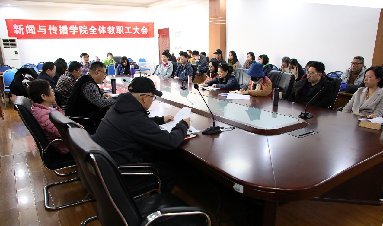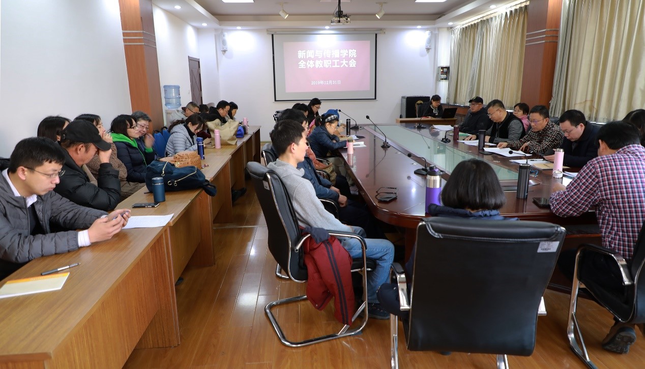 2019年12月31日,新闻与传播学院在博文楼521会议室召开全体教职工大会,学院40余名教职工参加会议,校考核组领导出席会议。会议由公司党委副书记、经理邱秉常主持。