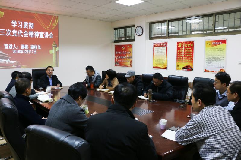 12月17日上午,校领导邵彬到文学院、新闻与传播学院宣讲中共太阳集团第三次代表大会精神。宣讲座谈会在博文楼412会议室举行,文学院及新闻与传播学院领导班子成员以及党员代表参加会议。