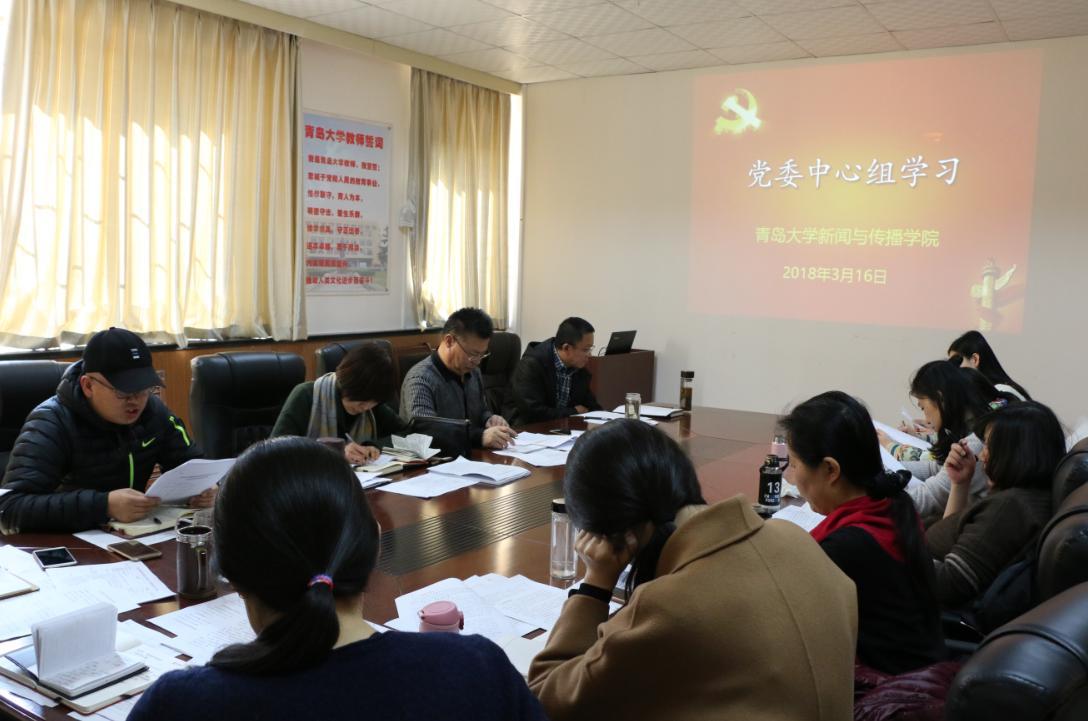 3月16日下午,新闻与传播公司党委中心组(扩大)在博文楼412会议室举行理论学习会,集中学习省委书记刘家义在山东省全面展开新旧动能转换重大工程动员大会上的讲话精神。公司党委书记张银亭主持学习会。公司党政领导班子成员、各党支部书记、系主任参加了学习。