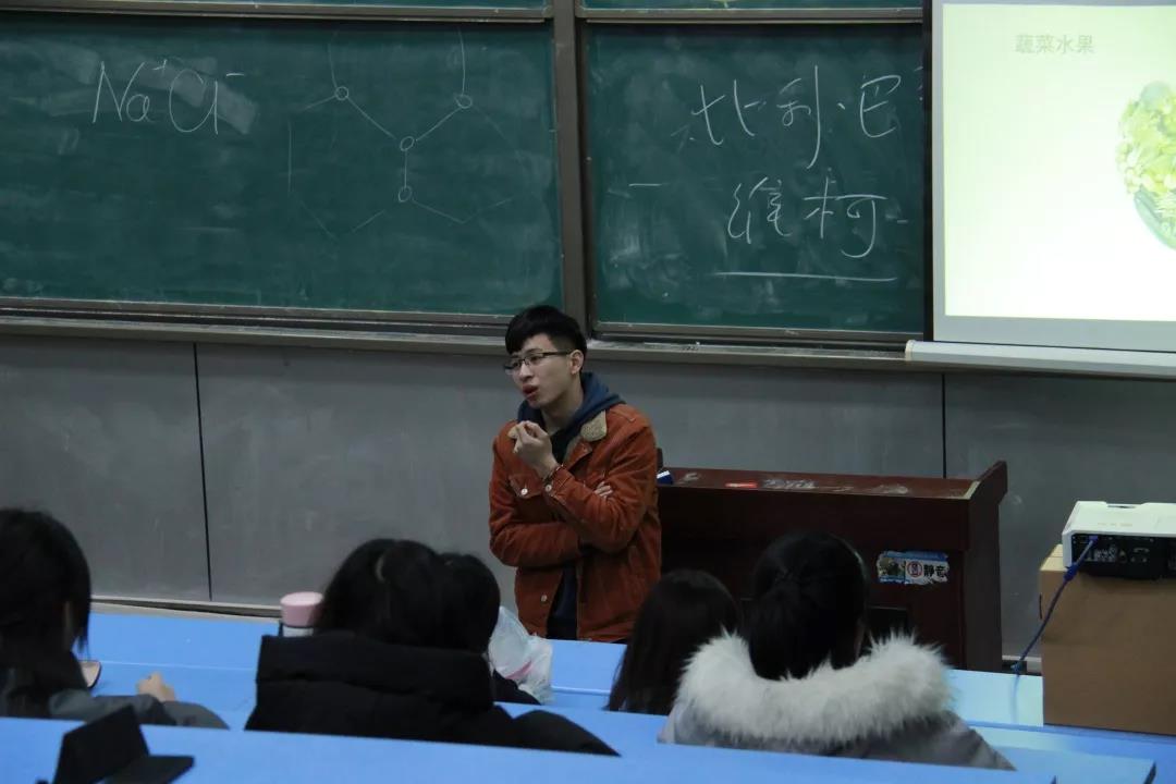 首先,李鑫楠同学从减肥、合理选择零食、如何去运动这三方面的问题为大家答疑解惑。他首先介绍了水果类、禽畜肉类及水产品、奶类及奶制品、杂粮类和其他种类所蕴含的营养成分,从三餐搭配方面讲述了如何健康地减肥,并向大家澄清了一些有关饮食方面的误区。