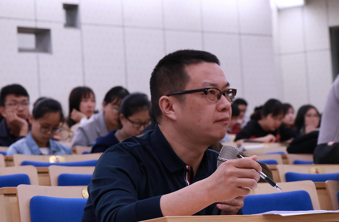 颁奖结束后,邱秉常老师上台发表讲话,对本次大赛各位选手的综合表现进行简要的点评,并对本次大赛到场的嘉宾表示感谢。本次比赛的开展有利于提高参赛选手的应聘技巧和能力,为获得实习机会的同学们提供了一次提升自我的平台。