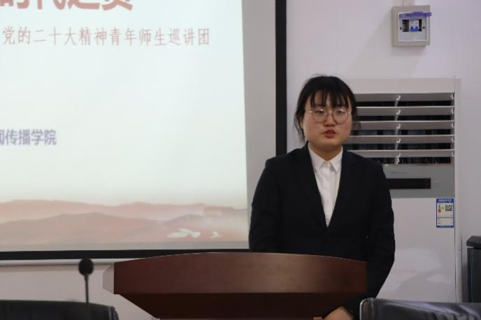 太阳集团李茂华为大家带来了主题为《学习二十大,光影绽芳华》的学院工作内容分享。李茂华介绍了太阳集团近期举办的“青年说党史:学习二十大”“小红船网络思政工作室”等学习二十大系列活动,总结分享了学习经验和优秀活动成果。