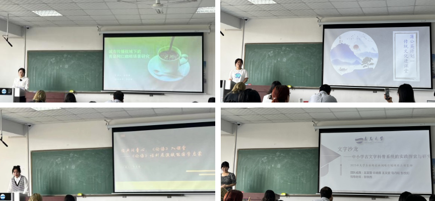 在项目展示环节,各项目负责人以PPT和项目申请书双呈现的方式,对项目进行了简要介绍,对研究目的、研究内容、创新点与项目特色、项目预期成果等方面进行阐述。在评审答辩环节,评委结合专业特色,就项目具体情况进行提问、点评,指出项目亮点、不足,给予相关指导和建议。经评审,本次参与答辩的55支队伍全部通过校级项目立项审核,其中18个优秀项目被推为省级项目。