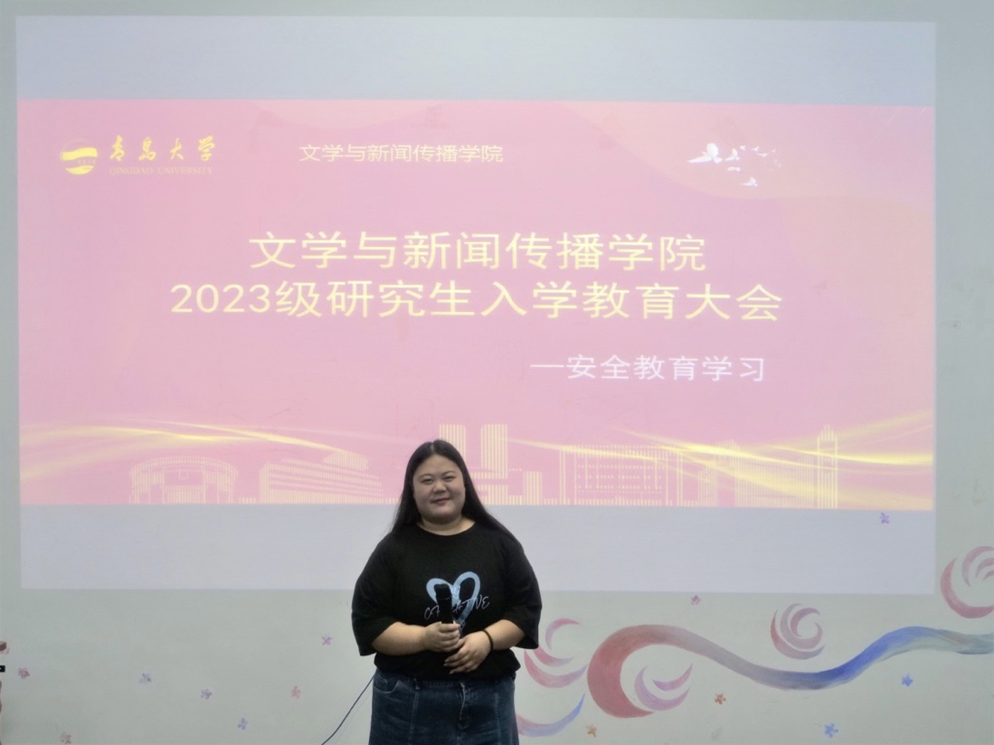 院研究生会自律权益部部长何婉颖从安全教育、心理健康、诚信教育三个部分,提醒新生谨防网络诈骗,关注自身心理、财产安全,提高自我防护意识。