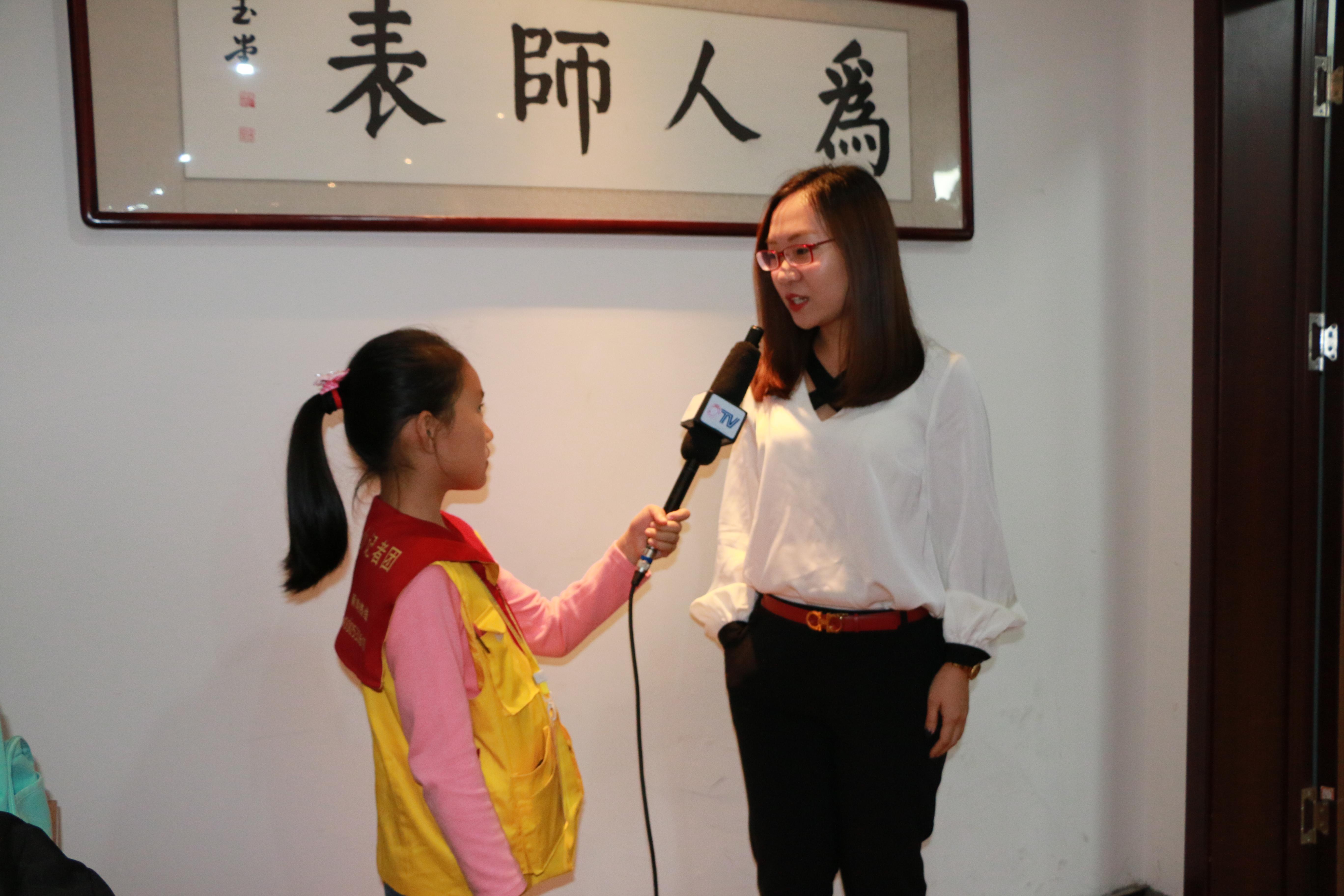 在采访互动环节,学院领导以及嘉宾就研究中心的工作开展及少儿传媒教育现场接受了小记者的采访。