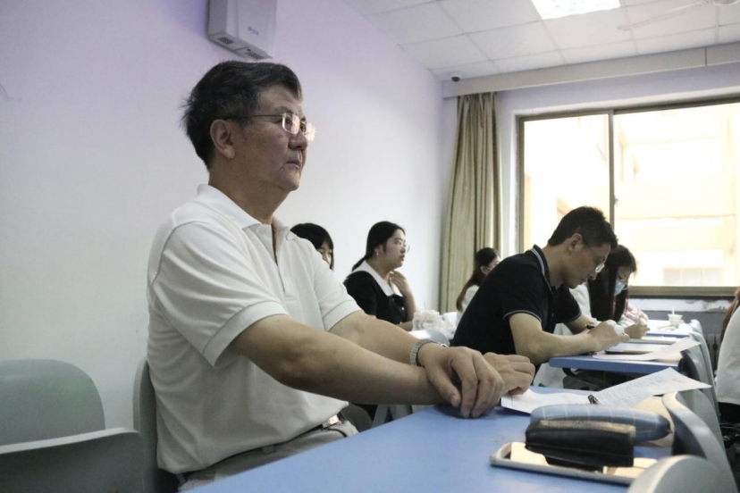 上午10:00,党委副书记汪黎明来到博文楼305温馨老师的《明清小说专题研究》课堂,在开课之前汪黎明首先关心了员工们的假期生活,在得知有员工利用暑假远赴喀什支教后,汪黎明表示大家来自五湖四海,共同学习四年很不容易,希望大家珍惜共同学习的机会,同时鼓励大家有机会可以去喀什看看,利用假期丰富自己的知识。在第一节课结束后,汪黎明与温馨老师交流了课堂感受,并对课堂内容给予肯定。
