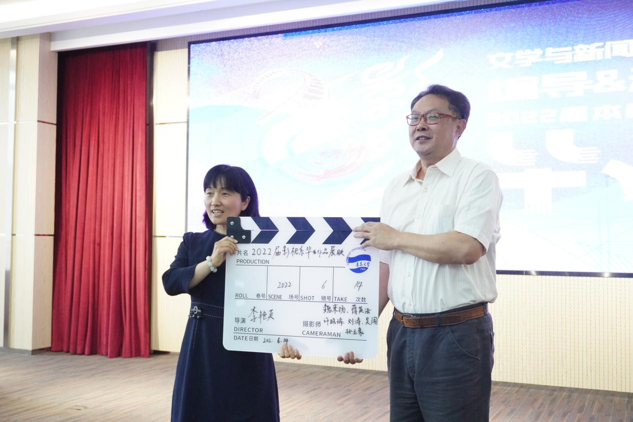 最后,刘东方和影视系系主任李艳英共同宣布影视系2022届毕业生优秀作品展映活动正式开始。