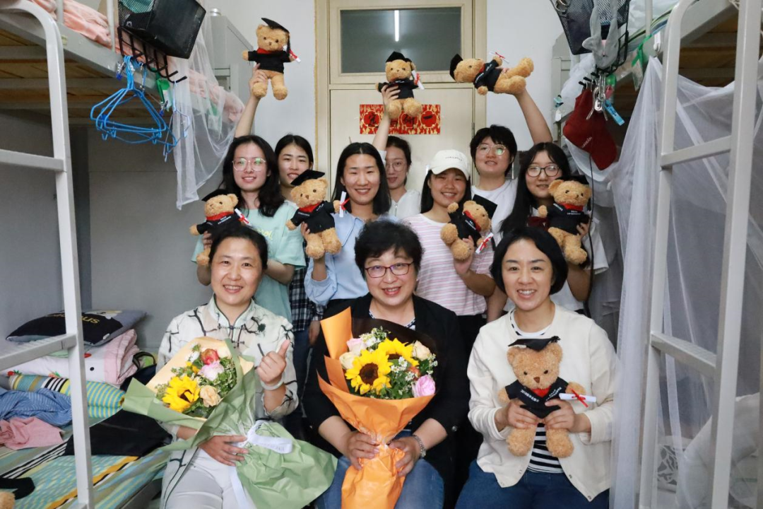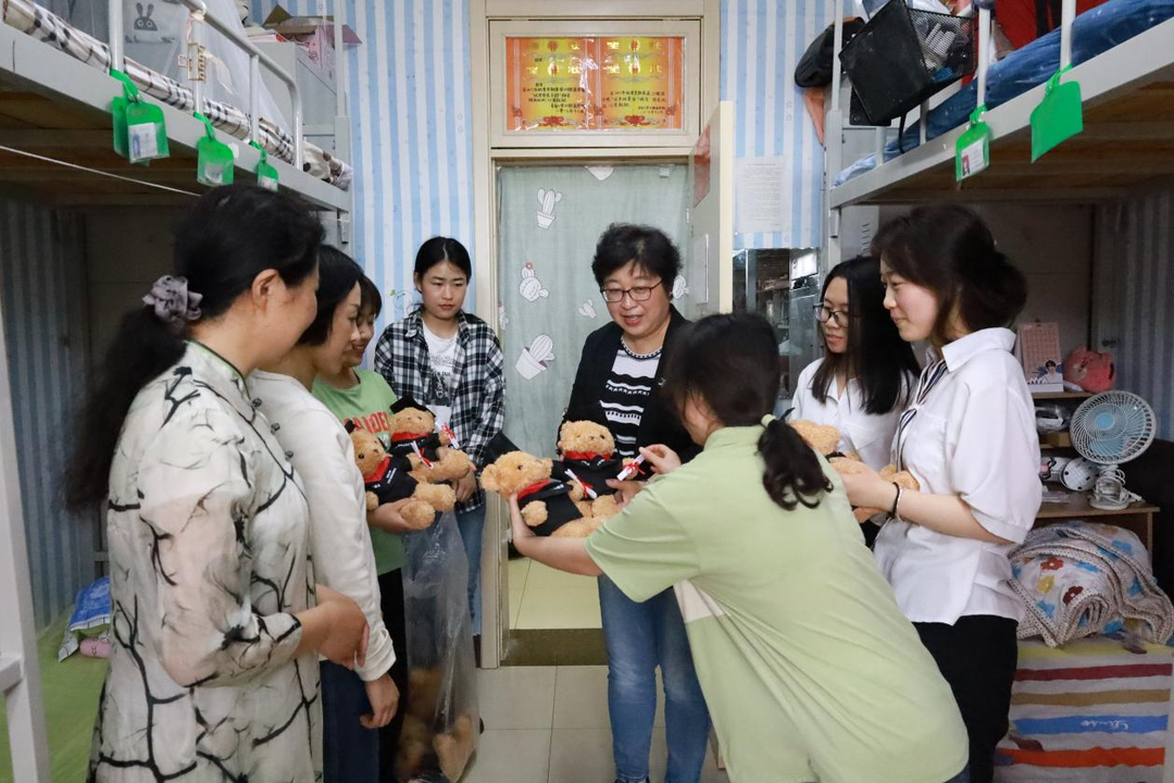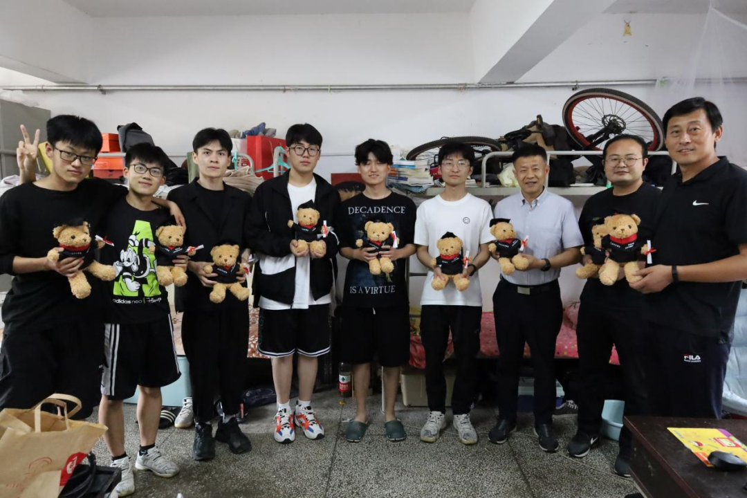 走访过程中,领导老师与同学们交流毕业季近期情况,并为同学们送上了学院特别定制的小熊玩偶,表达学院对于毕业生同学的特别关心与祝福。