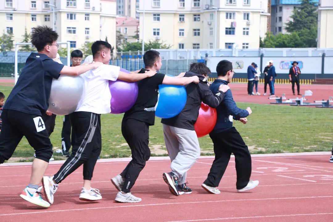 齐心协力迎面接力每队10人,5人一组进行接力。5人中,每两人之间要夹一个健身球,比赛过程中球不得落地。比赛开始前,队员们拿到比赛用球进行热身,每个人都体验了夹球的感觉。他们经过练习摸索出了比赛的技巧——将手搭在前一名同学的肩膀上,这样能够保证手尽可能不碰到球,更有利于夹球跑。参与者许晓瑞表示:“我觉得我们发挥得已经很好了,因为大家彼此都不认识,只是在赛前有过短暂交流。我们在比赛过程中稳扎稳打,球没落过地,总体来说这次趣味运动会非常地开心。”