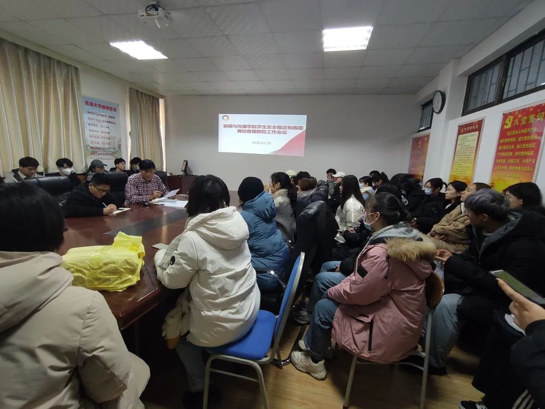 2020年12月29日12:30,新闻与传播学院召开了以"员工安全稳定和离校疫情防控"为主题的工作会议,由新闻与传播学院学工办主任马丰刚老师主持。