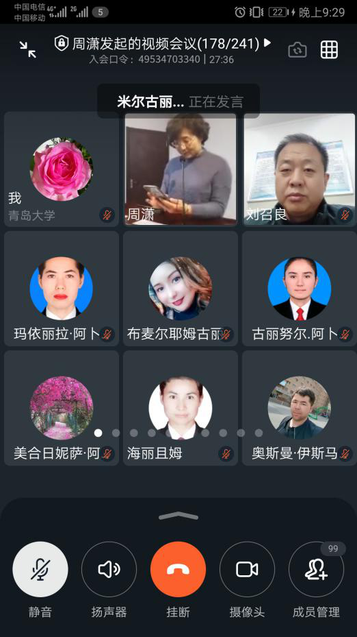 项目启动前,青岛、喀什两地的相关领导、教师、研究生齐聚云端,举行了线上开班仪式,并就本次培训的目的、教学安排和管理制度作出进一步安排。