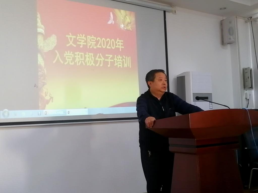 10月24日下午文学院2020年秋季学期入党积极培训班在浮山校区博文楼5楼会议室开班,全院80余名积极分子参加了此次培训。文公司党委书记杨立华、党委副书记戚昕主讲第一讲,主题为“端正入党动机,明确入党流程”。