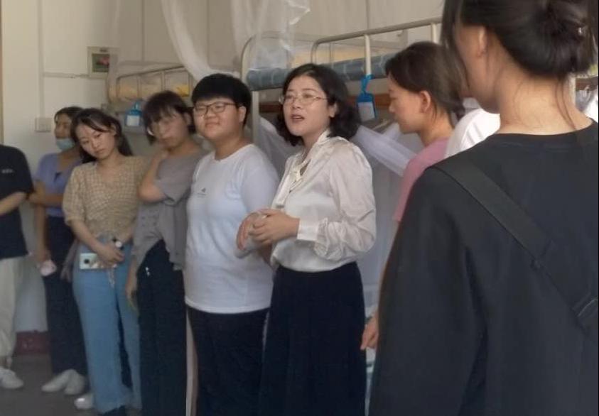 杨立华书记、戚昕副书记、班主任韩菁以及辅导员宋静宜、张成看望新生