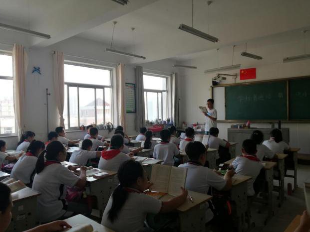 李宗轩同学在威海市文登区三里河小学为五年级五班开展了推普周活动。为同学们详细介绍了普通话的内涵,推广普通话的目的、内容和意义,并带领全班同学运用标准的普通话朗读抒情散文《少年中国说》,针对同学们的读音错误进行纠正,讲授了自主训练普通话的方法。同学们收获颇多,对普通话有了更加深刻的了解,对普通话的运用更加重视,掌握了一定的普通话技巧,并表明日后讲规范话、说文明语。