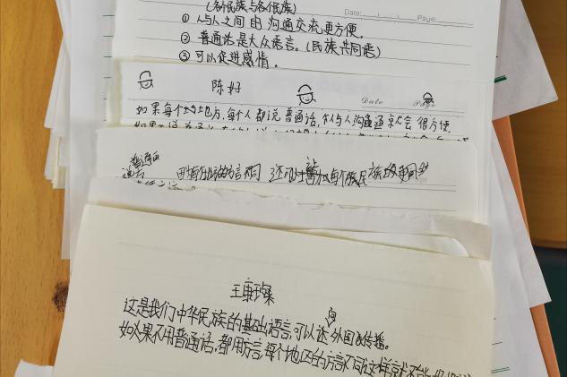 黄震同学在菏泽市牡丹区实验中学七年级两个班级开展了普通话宣传课。在课堂上,通过播放《生僻字》和《龙文》两首有关汉字的歌曲,让同学们在音乐情境中思考如何更好地展示汉字文化,了解讲好普通话的重要性。课堂气氛活跃,同学们表达了自己对普通话的理解,并纷纷立志学好中国字,说好普通话。