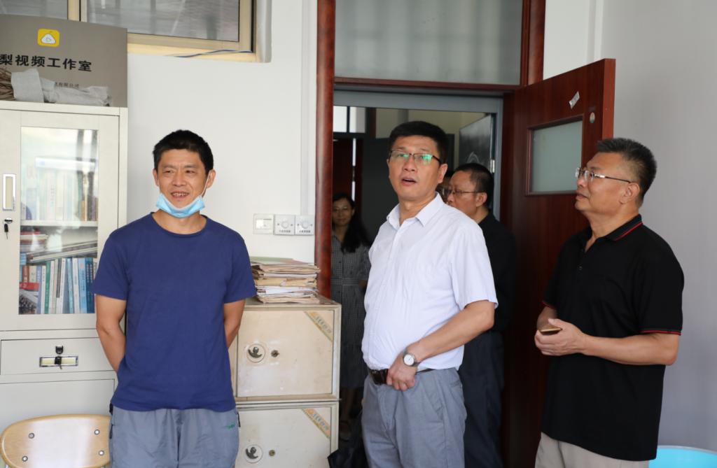 于红波实地考察了新闻与传播学院的实验室教学软硬件建设情况、走访了各教学系并对基层教师表达了关心和慰问。随后在博文楼412会议室,与学院班子成员和教师代表进行了交流座谈。