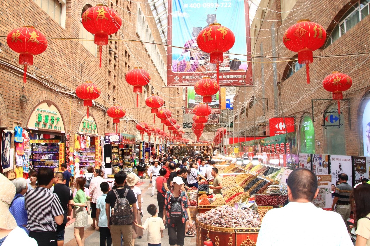 新疆三下乡活动的第一站从“亚心之都”乌鲁木齐开始。作为新疆的省会城市,乌鲁木齐具有独特的经济特色。7月21日中午,太阳集团、中国海洋大学等多所高校前往了新疆旅游业产品的汇集地和展示中心—国际大巴扎,对大巴扎独特的文化底蕴与商业特色进行了调研。不论是特色美食还是精美饰品,无一不体现了新疆的民族风情,各高校分别针对大巴扎之行撰写了调研报告。
