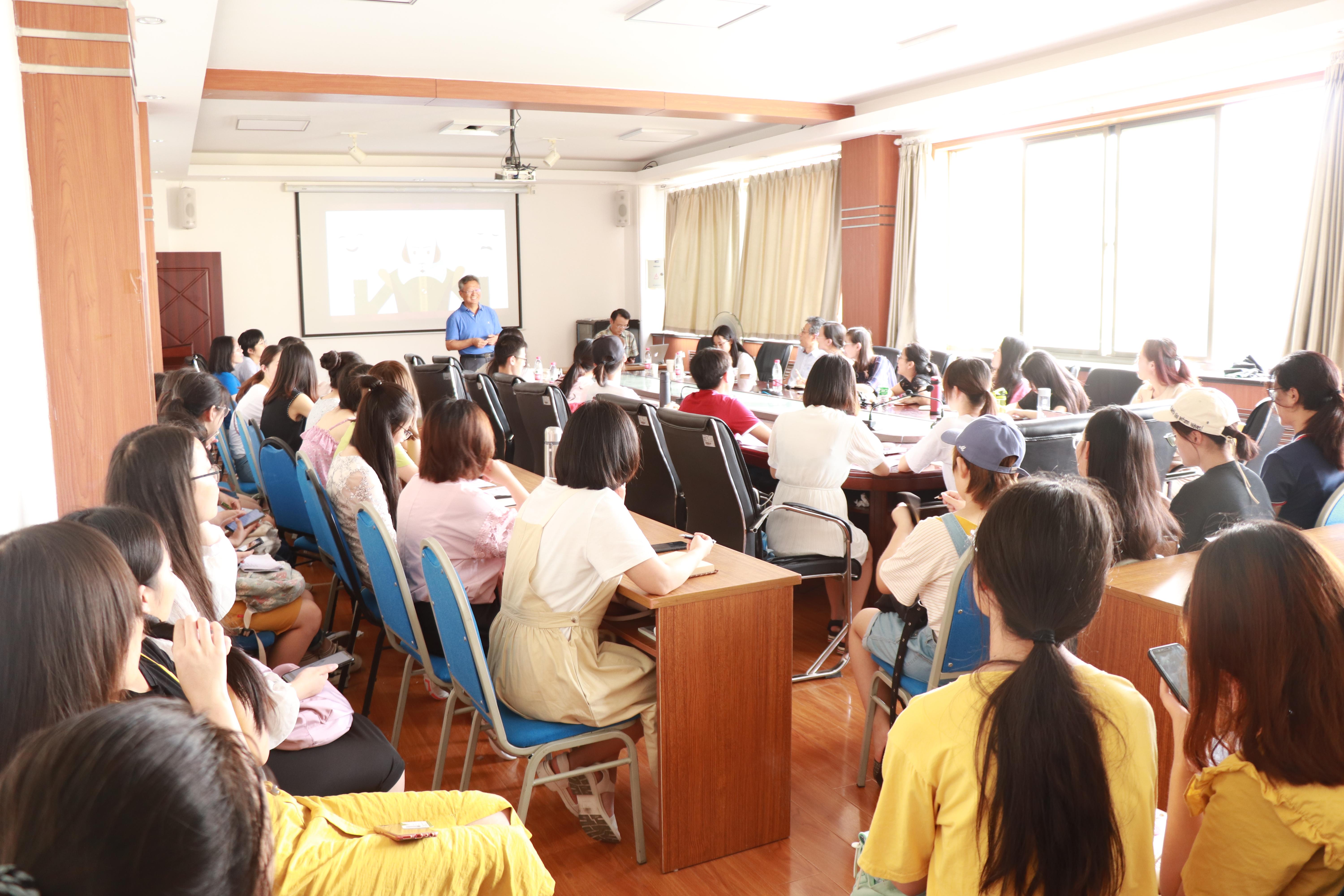 7月11日下午14:30,文学院夏季学期高端学术讲座《新译莎剧:与莎士比亚交个朋友》在浮山校区博文楼五楼会议室举行。此次讲座由中国现代文学馆研究员,《中国现代文学研究丛刊》执行主编,河北大学博士生导师,当代作家、老舍研究专家、翻译家傅光明教授主讲。文学院百余名师生积极参与,现场反响热烈。