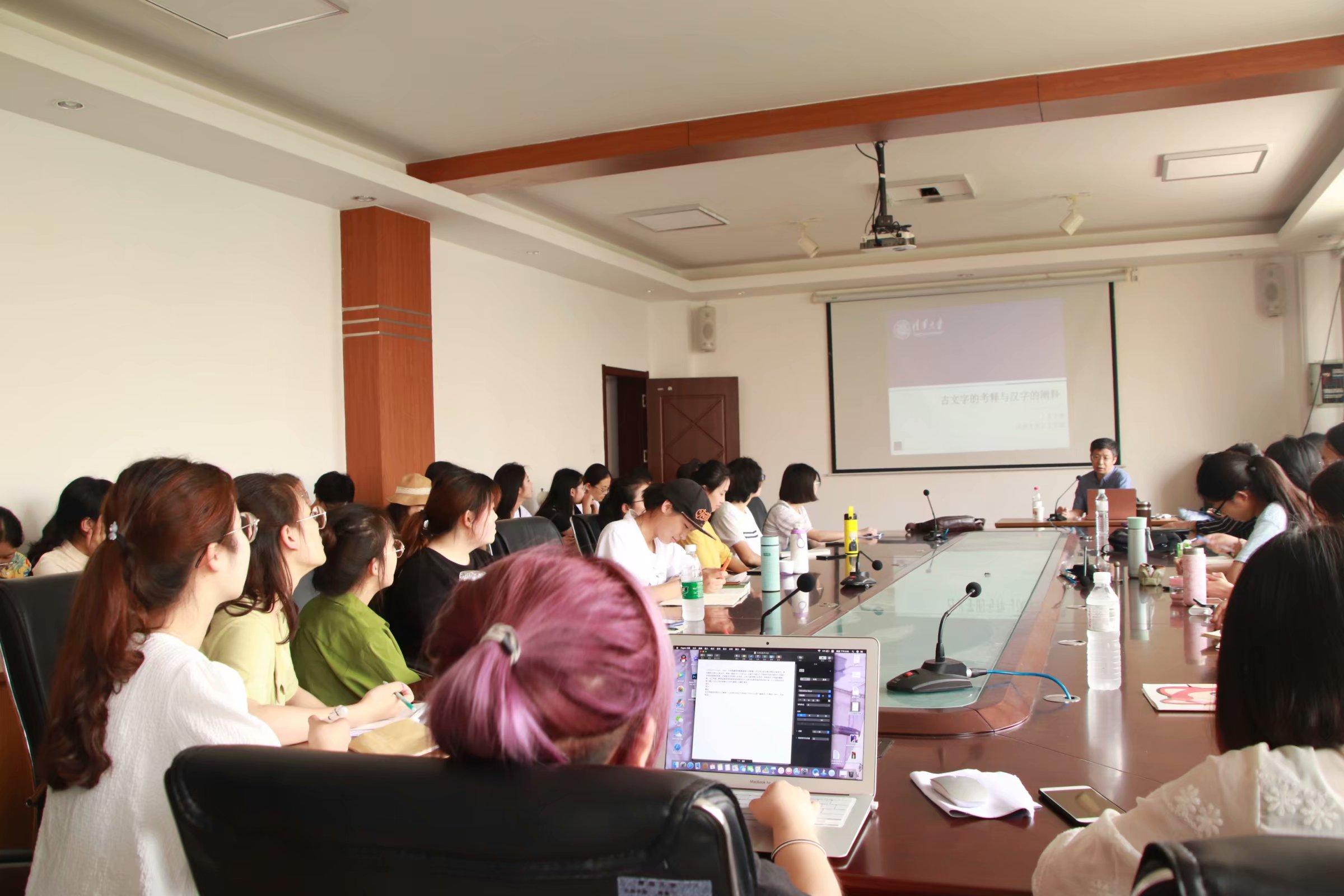 7月4日下午14:00—16:00,文学院夏季学期高端学术讲座第5讲暨博文讲堂2019年第18讲在浮山校区博文楼会议室举行。来自清华大学中文系主任、教授、国家“2011计划”出土文献与中国古代文明研究协同创新中心战国文字研究首席科学家、汉语言文字学博士生导师、历史文献学博士生导师、教育部长江学者特聘教授、教育部高等学校教学指导委员会中文类专业教学指导委员李守奎,为文学院的师生做了题为《古文字的考释与汉字的阐释》的讲座。