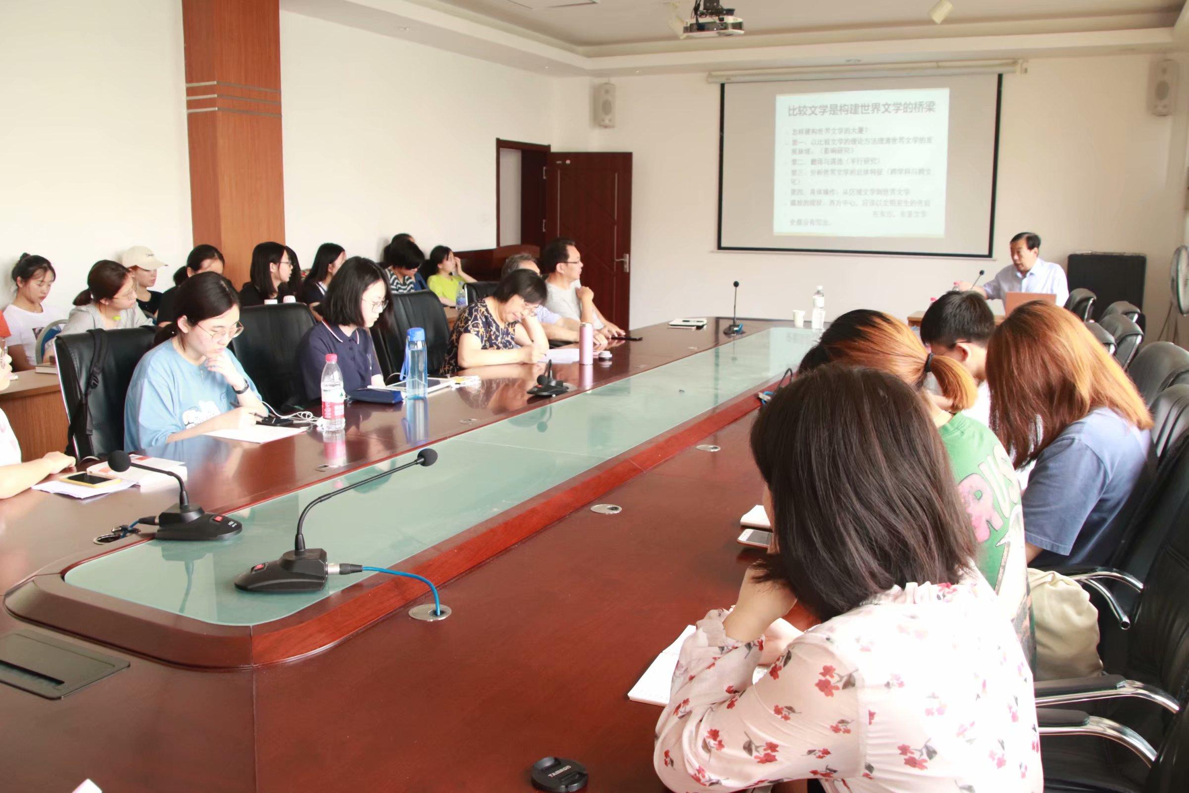 7月4日上午8:00,文学院于浮山校区博文楼会议室举办夏季学期高端学术讲座第3讲暨文学院博文讲堂2019年第16讲—— “从理论与个案对世界文学的重估”。主讲人为中国人民大学文学院杰出学者特聘教授、长江学者、中国比较文学学会副会长、中国现代文学研究会副会长高旭东教授。文学院近百名师生积极参与,反响热烈。