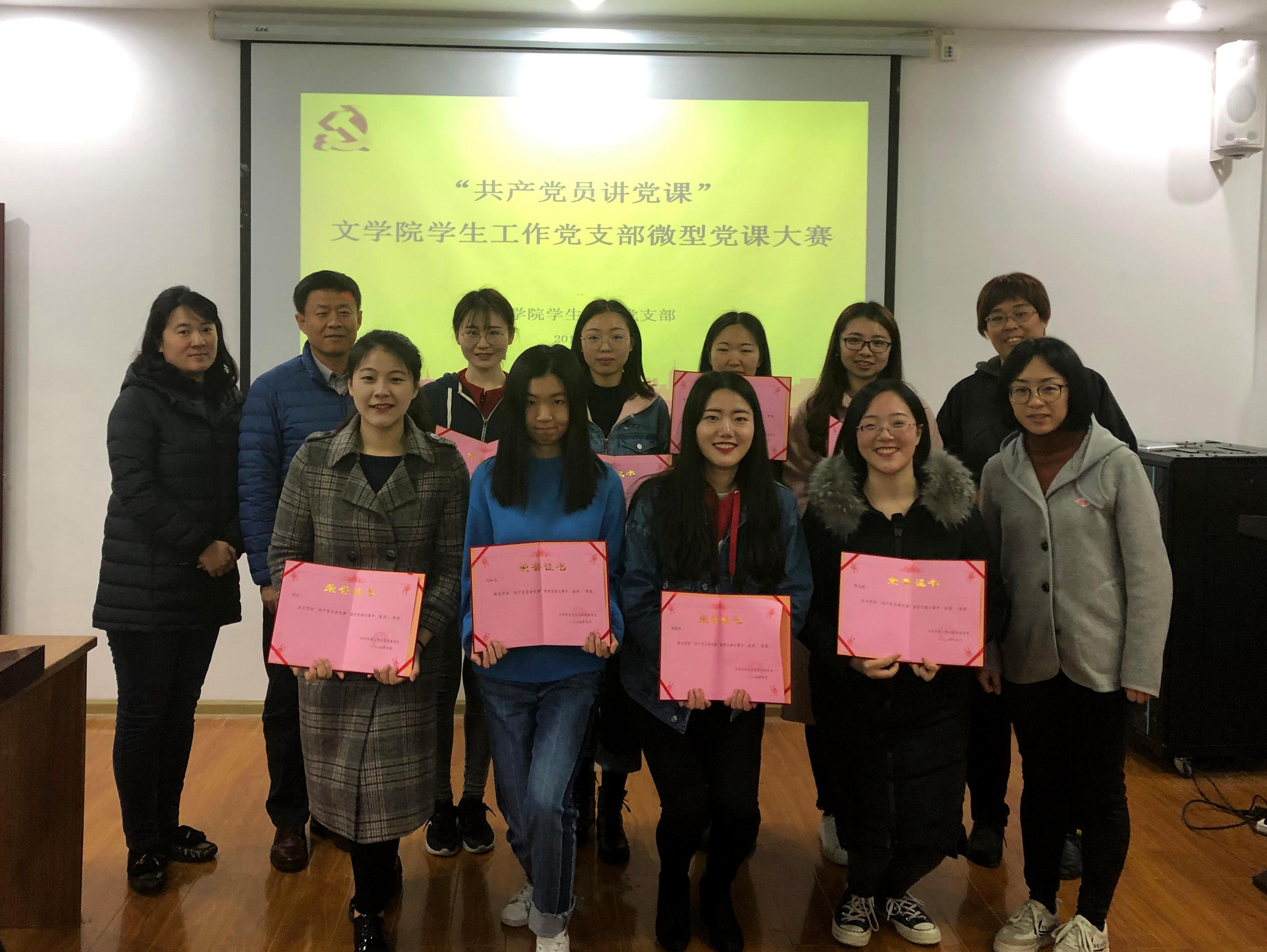 4月9日下午两点,“共产党员讲党课”——文学院微型党课大赛在博文楼五楼会议室举行。文公司党委副书记张辉、团委书记曹珺、学工办主任韩菁和员工工作党支部书记李晨曦作为评委出席。支部全体党员以及入党积极分子现场观摩了比赛。