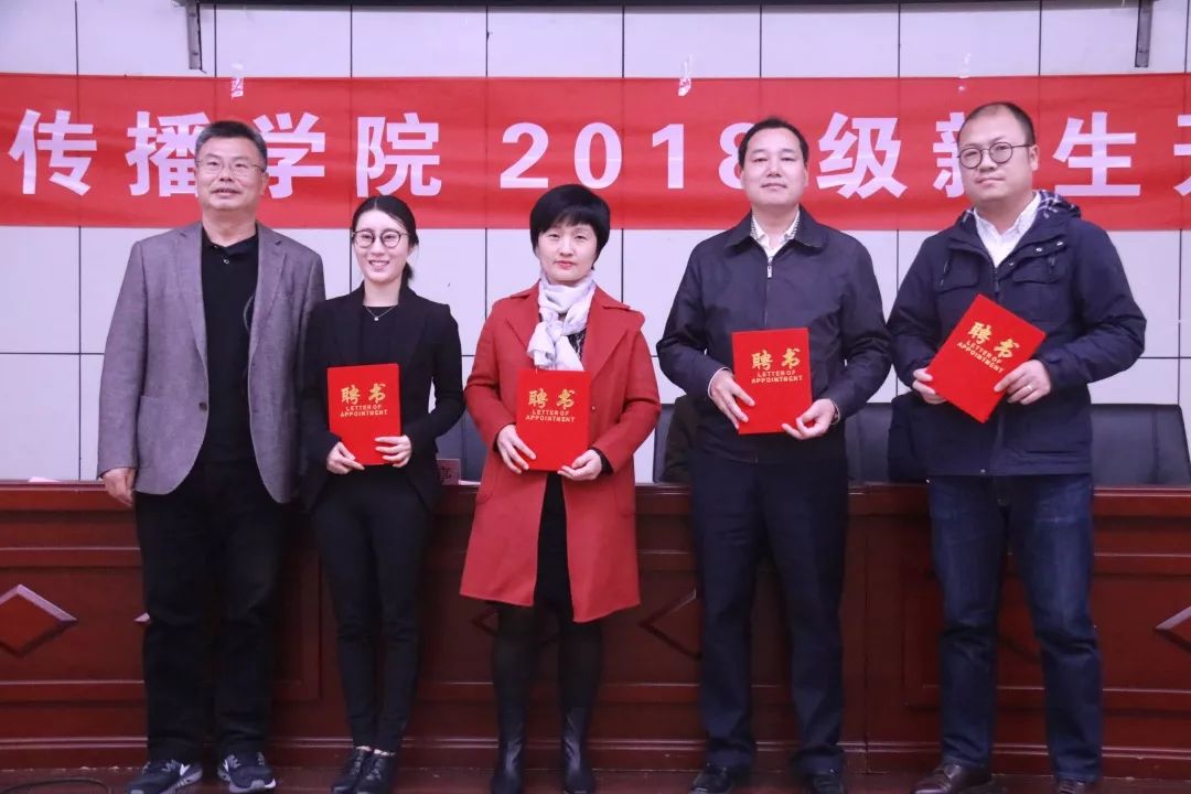聘任邱建国为2018级新闻1班班主任、聘任刘毅为2018级新闻2班班主任、聘任李艳英为2018级编导1班班主任、聘任于相坤为2018级编导2班班主任、聘任何蝌为2018级动画班班主任;聘任余衍飞为2018级新闻1班业界导师、聘任景毅为2018级新闻2班业界导师、聘任周超为2018级编导1班业界导师、聘任刘杰为2018级编导班2班业界导师、聘任闫共斌为2018级动画班业界导师。由新闻与传播公司党委书记张银亭向各位班主任、业界导师颁发聘书。