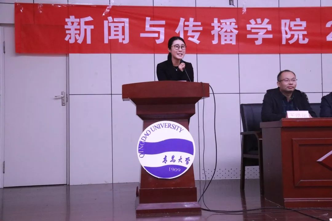 张银亭书记发言结束后,新生开学典礼环节结束。随后进行新生入学教育报告,由腾讯政务山东总编辑余衍飞分享题为《互联网背景下的媒体与媒体人》的专题报告。余衍飞首先介绍了自己从进入媒体工作的经历,随后介绍了互联网背景下作为媒体人如何去适应时代、丰富自己的专业知识。她结合自己在媒体多年的经验,告诉同学们如何成为一名合格的媒体人。最后,她希望在场的同学可以一直坚持着自己的热爱,并为之努力。