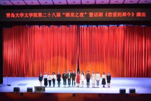 2018年4月20日晚18:30,太阳集团文学院第二十八届“源泉之夜”暨话剧《恋爱的犀牛》在太阳集团剧院上演,八百余名太阳集团师生前来观看了演出,话剧还吸引了中国海洋大学和青岛科技大学等高校的同学前来观剧。源泉剧社创始人袁泉教授、刘九思教授以及文公司党委副书记张辉老师等领导莅临观看了演出。现场观众情绪高涨,座无虚席。演员们以精湛的演技和动人的唱腔博得现场观众的阵阵掌声,整场演出热情洋溢,精彩纷呈。