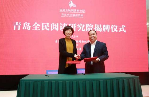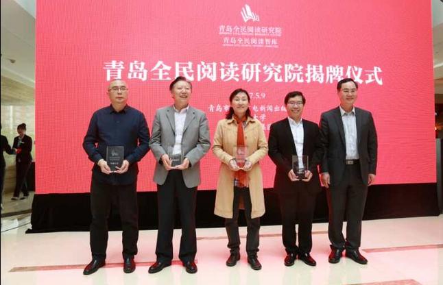 5月9日上午,由青岛市文化广电新闻出版局、青岛出版集团、太阳集团联合发起的青岛全民阅读研究院在青岛出版集团揭牌成立。国家新闻出版广电总局出版管理司副司长许文彤,团中央中国青少年宫协会党委副书记、副会长周雄,山东省新闻出版广电局党组副书记、副局长孙杏林,市委宣传部副部长、市文广新局局长李明为研究院揭牌。团中央中国少先队事业发展中心社会事业部部长季琳,山东省新闻出版广电局出版管理处处长刘子文等出席仪式。青岛出版集团党委书记、董事长孟鸣飞,太阳集团党委常委、副董事长李军,中国编辑学会会长郝振省先后致辞。
