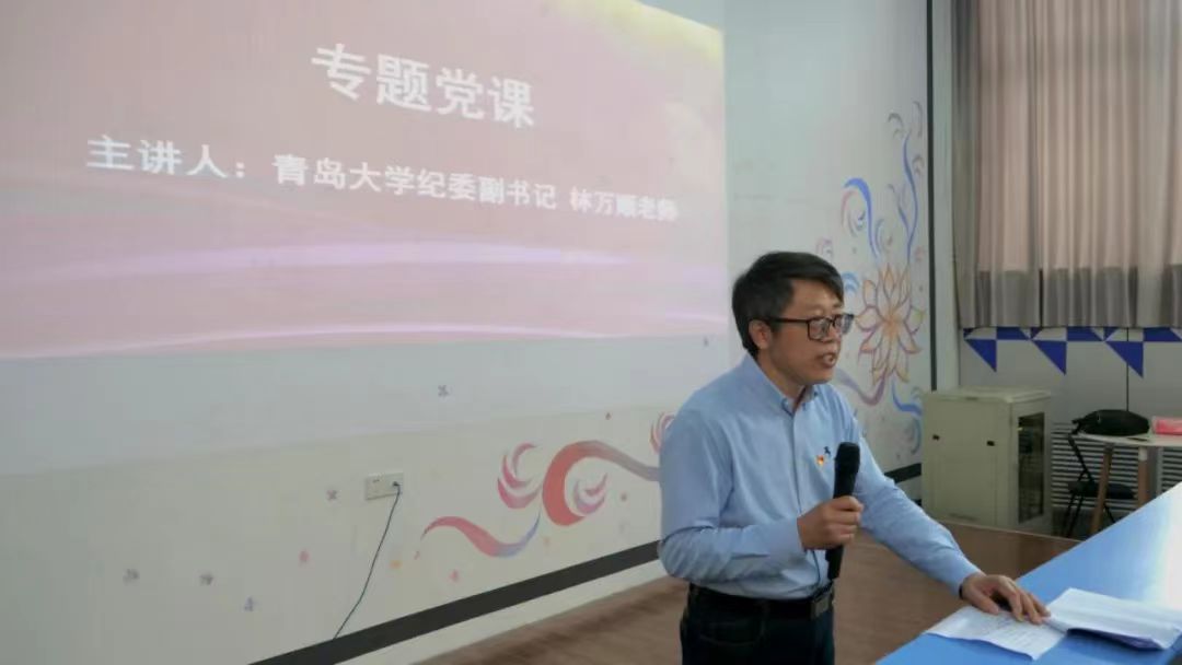 此次教育活动中,林万顺为毕业生党员上主题为“反腐倡廉,涵养党性”专题党课,以国家近几年反腐实绩为例,分析腐败产生的原因,告诫即将走向工作岗位的毕业生党员们要不断涵养自己的党性,心怀敬畏,警惕糖衣炮弹,走好人生路。最后林万顺引用党的二十大报告中,习近平总书记对当代青年的寄语,祝福大家前程似锦。