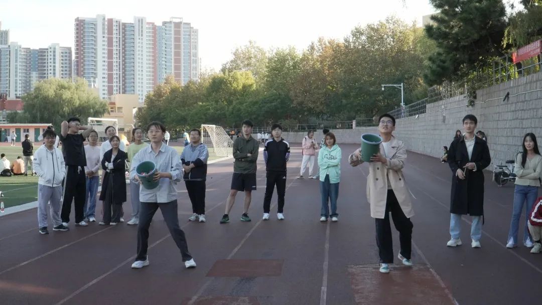 扔沙包是其中最为精彩的活动,每一组有三位同学负责扔沙包,另三位同学负责拿着桶接沙包。选手们需要在指定的时间内,尽可能多地将沙包扔进桶内,计时一分钟,桶内最多沙包者获胜。同学们在这个活动中表现得异常忙碌,大跨步、跳跃,每个人都在尽己所能接住从远处飞来的沙包,展现出超强的身体灵活性,在场的观众也为选手们呐喊加油,现场氛围热烈高涨。