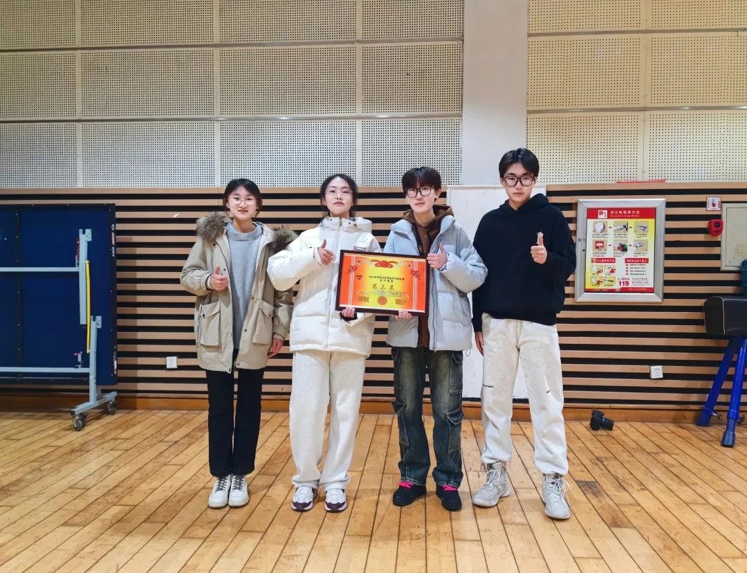在前期的小组循环赛中,团队充分训练、积极备战。在队员宋沁妍、乔琦雯、杜欣芮、于晓宇四名成员的共同努力下,团队先后战胜化学化工学院与旅地学院,以小组第一的成绩出线进入十六强。