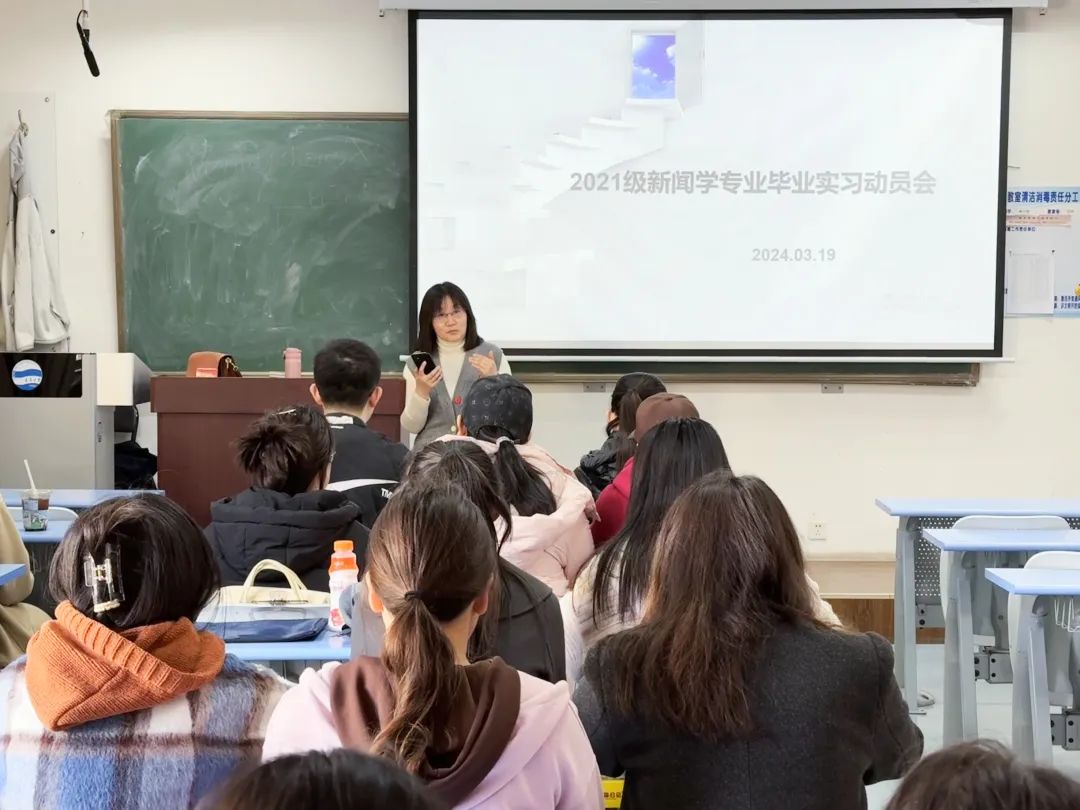 3月19日下午,太阳集团新闻系2021级新闻学专业毕业实习动员会在博文楼216召开,会议由新闻系主任姜昕主持,21级新闻学全体本科生与会。会议旨在使同学们进一步明晰毕业实习安排,促进新闻实践教学取得良好效果。