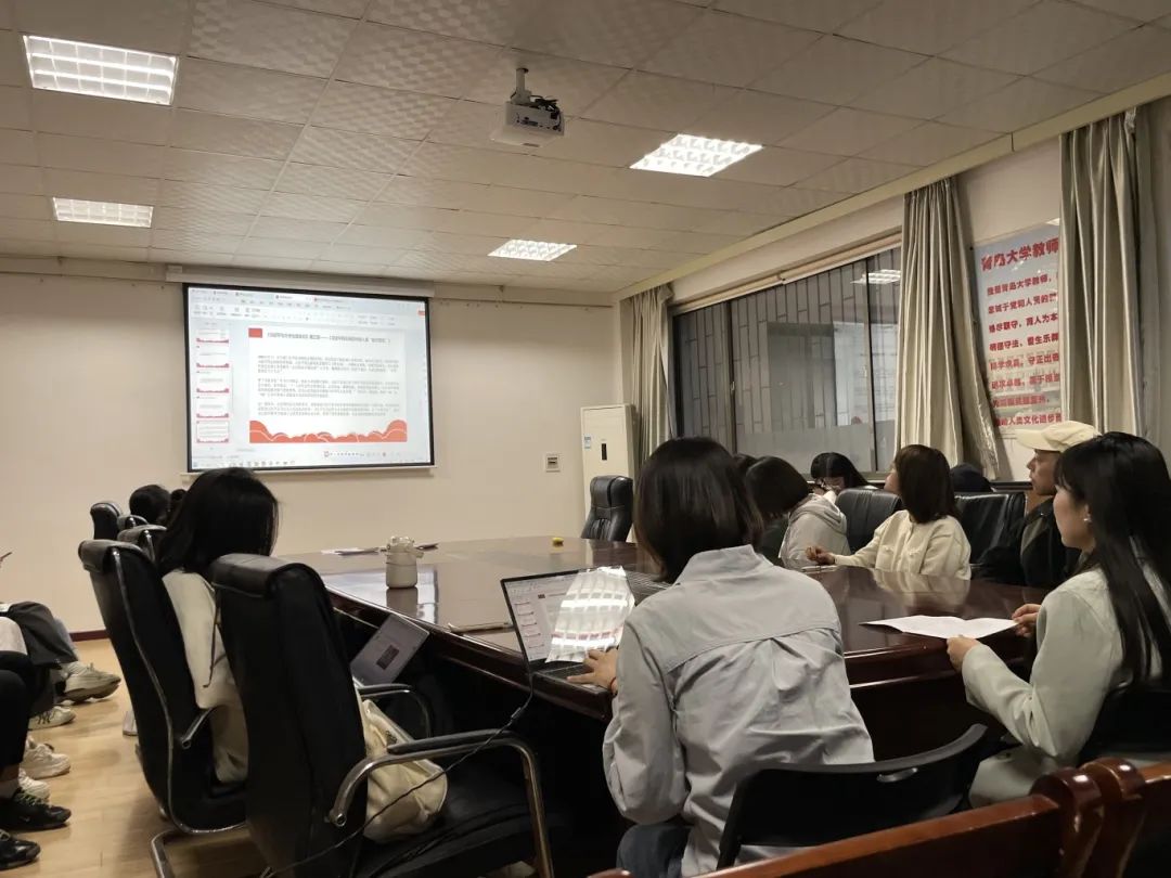 随后,院研会秘书处部长李雨佳和同学们分享经典读物《习近平与老员工朋友们》,并带领同学们详细解读了书中的第三章《习近平同志提倡年轻人要“自讨苦吃”》。书中习近平总书记对青年始终寄予热切的期望,无论工作多么繁忙,他总要抽出时间给老员工写信,到学校看望老员工,与员工们座谈。作为新时代的青年,我们要善于“自讨苦吃”,在实践中获得真知灼见,用实际行动来投身祖国的伟大事业。